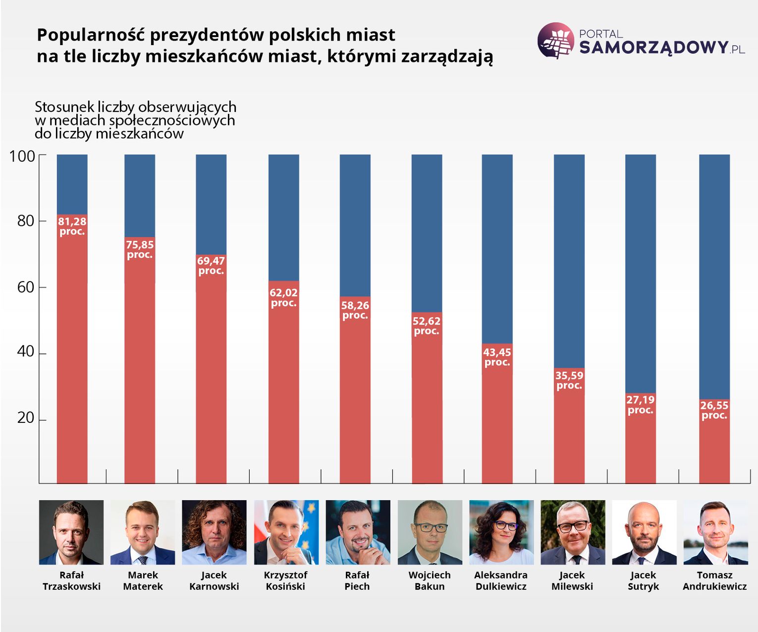 Autorzy opracowania zestawili popularność prezydentów polskich miast z liczbą mieszkańców miast, którymi zarządzają. Pod uwagę wzięto oficjalne konta z dwóch portali społecznościowych - Facebooka oraz Twittera. Liczbę mieszkańców miast zaczerpnięto z najnowszych danych Głównego Urzędu Statystycznego.