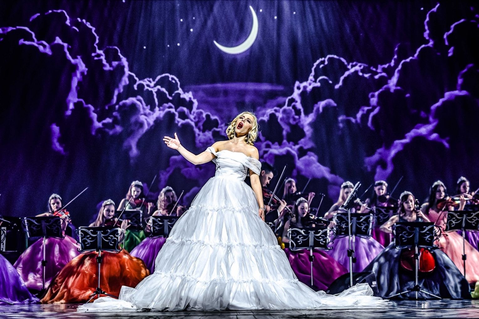 Publiczność usłyszy m.in.: Walc "Nad pięknym modrym Dunajem", Arię Barinkaya "Wielka sława to żart", Duet wszech czasów "Usta milczą dusza śpiewa", polkę "Tritsch- Tratsch" oraz słynny "Marsz Radeckiego". W klimat magicznych bali wiedeńskich wprawią Państwa olśniewające kreacje artystów, przepiękne suknie balowe solistek oraz Orkiestry Księżniczek Tomczyk Art wykonującej to niezwykłe widowisko. Przeniesiemy Państwa do bajkowego świata. Tutaj każdy może bujać się w rytm muzyki oraz śpiewać wraz z solistami najpiękniejsze melodie jak choćby "Wielka sława to żart", czy "Usta milczą dusza śpiewa". NOWOROCZNY KONCERT WIEDEŃSKI – ORKIESTRA KSIĘŻNICZEK to przede wszystkim doskonała zabawa. Chcemy śpiewać i bawić się na scenie razem z Państwem!