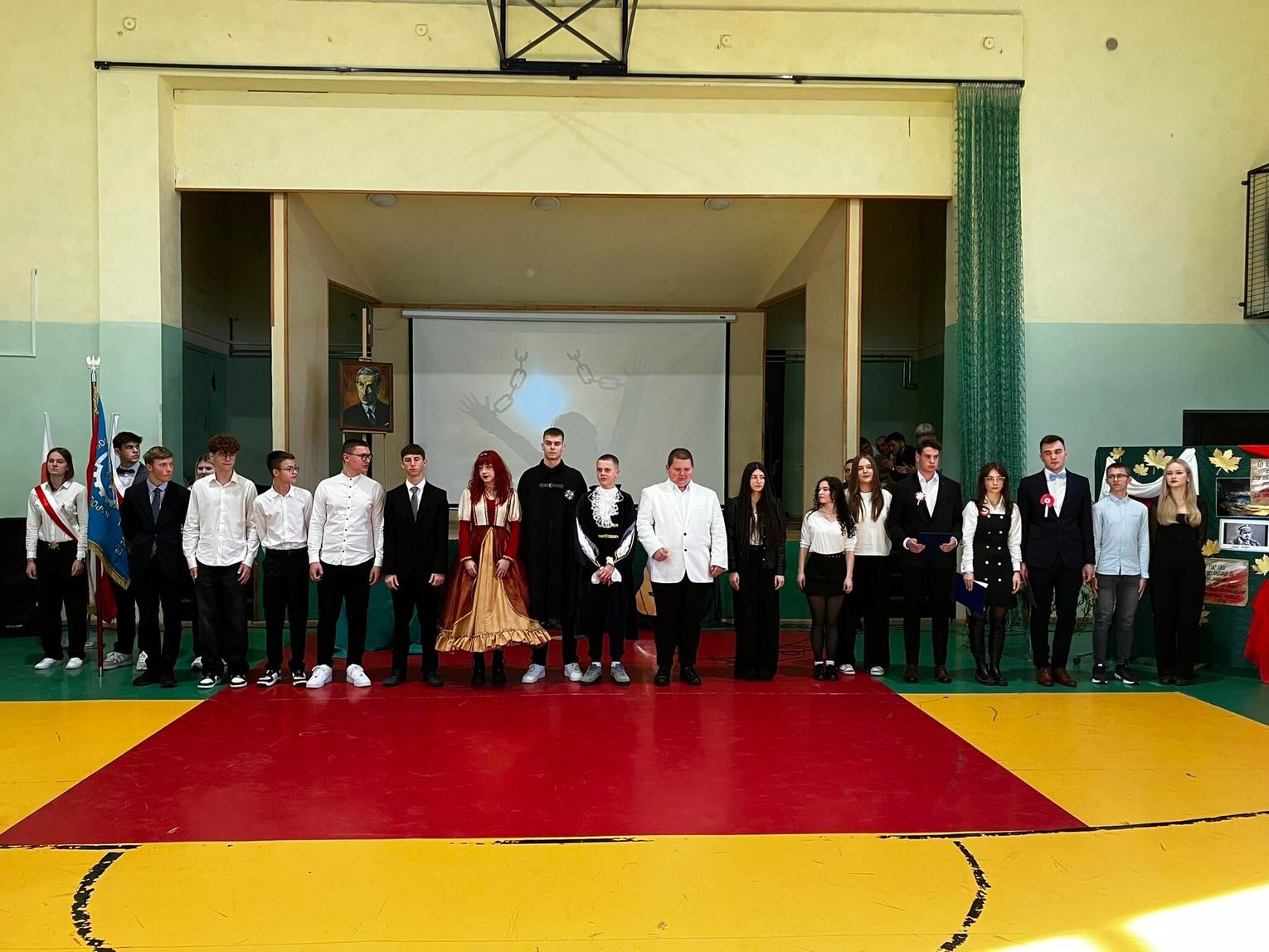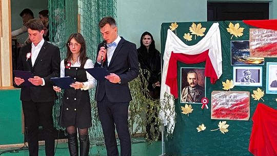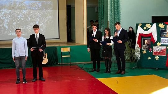 Uroczystość rozpoczęła się od wprowadzenia sztandaru szkoły i odśpiewania wszystkich zwrotek hymnu państwowego w ramach Ogólnopolskiej Akcji "Szkoła do Hymnu". Prowadzący uroczystość uczniowie klasy VTCI(technik mechatronik i informatyk) Karolina Podgórska, Maciej Rożek i Jakub Nobis w swoim wystąpieniu podkreślili znaczenie tego dnia w historii naszego kraju oraz , jak ważne jest pielęgnowanie pamięci o bohaterach, którzy walczyli o wolność i suwerenność Polski.