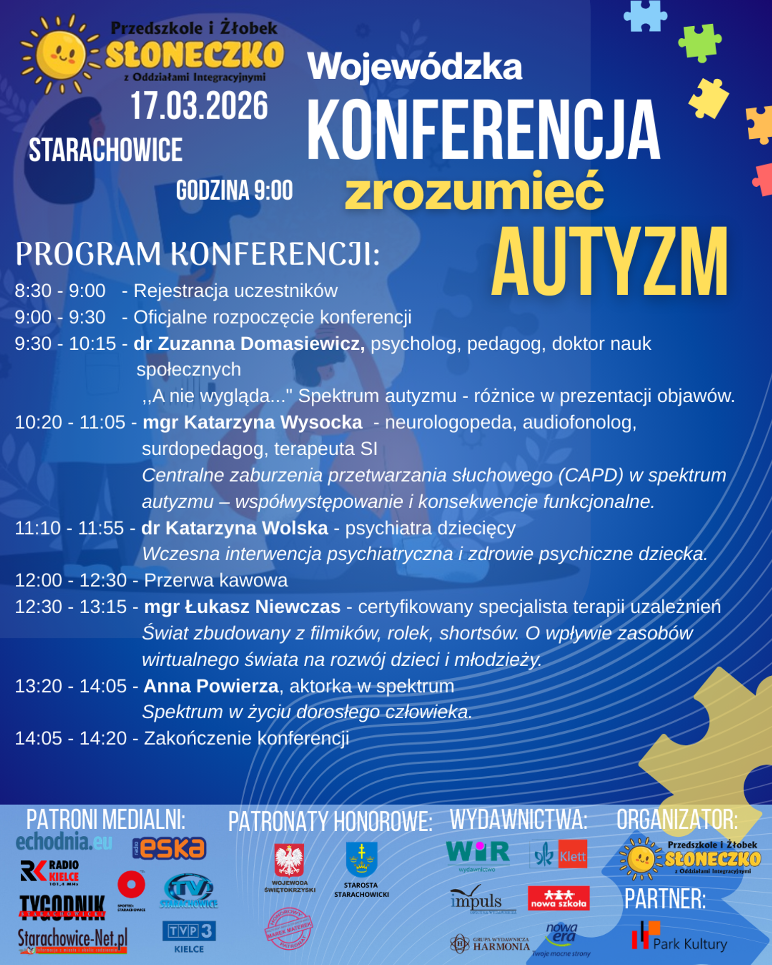 W Starachowice odbędzie się wyjątkowe wydarzenie edukacyjne. Organizator – Przedszkole i Żłobek Słoneczko z Oddziałami Integracyjnymi – zaprasza na wojewódzką konferencję poświęconą autyzmowi.
