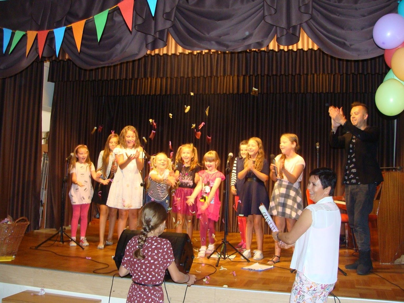 Wspaniałym finałem wakacji był prawie godzinny koncert przygotowany przez uczestniczki Wakacyjnej Akademii Grania i Śpiewania, który uświetnił podsumowującą prezentację oraz wręczenie pamiątkowych dyplomów dla najaktywniejszych uczestników zajęć.