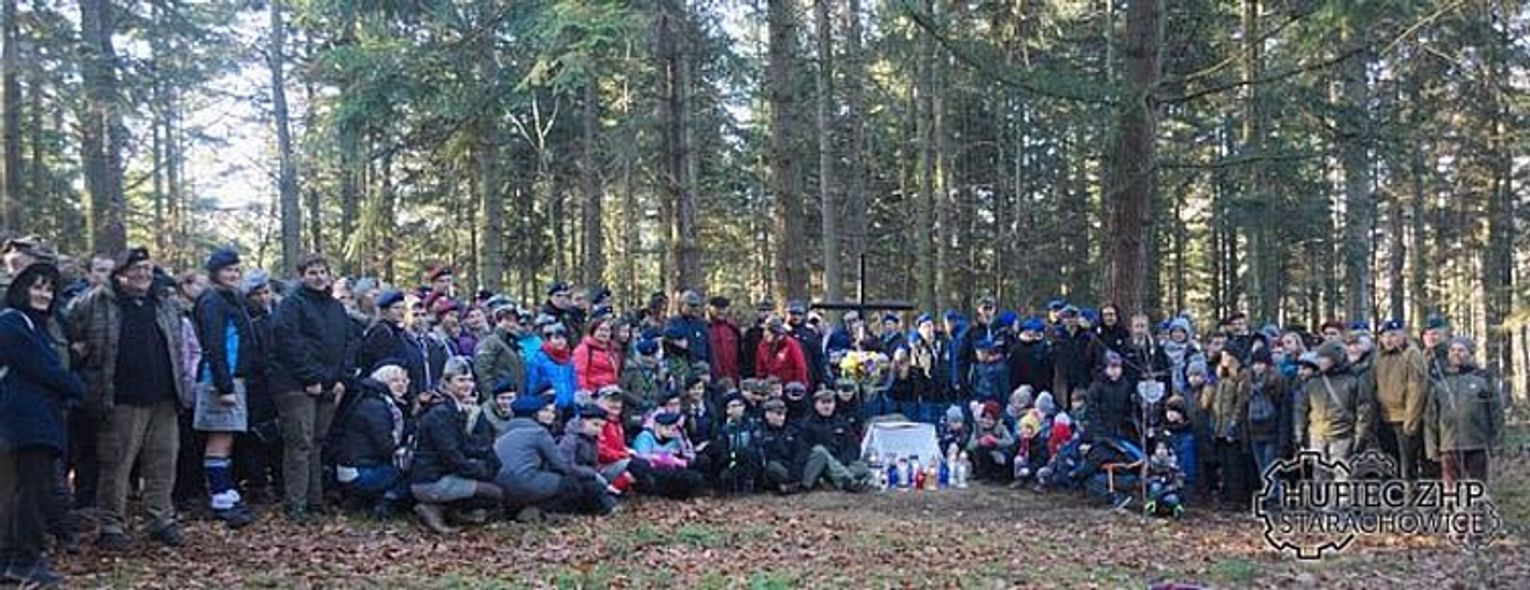 Razem z nami przy tychowskiej mogile byli: członkowie rodziny Jana Krali „Kokoszki”, prezes ŚZŻAK Koło w Starachowicach pan Leszek Nowak, przedstawiciele władz harcerskich ze skarbnikiem Chorągwi Kieleckiej ZHP pwd. Joanną Pawłowską na czele, samorządowych z radnym powiatu Panem Dariuszem Dąbrowskim i wójtem Gminy Mirzec Panem Mirosławem Sewerynem. Nie zabrakło przedstawicieli Komendy Powiatowej Policji i Nadleśnictwa Starachowice oraz słuchaczy Uniwersytetu III Wieku i przyjaciół naszego rajdu, którzy od lat są w tym dniu z nami.