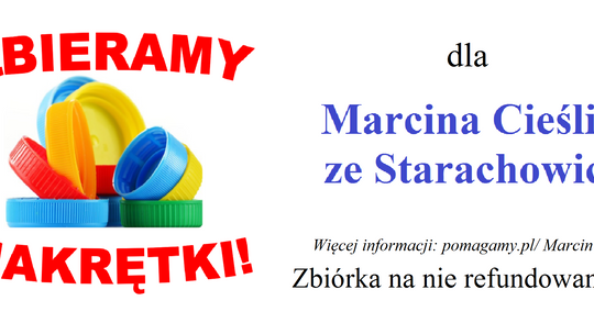 Kolejna zbiórka przeznaczona jest dla pana Marcina Cieśli zmagającego się z czerniakiem złośliwym. Obecnie mamy 500 kilogramów nakrętek.