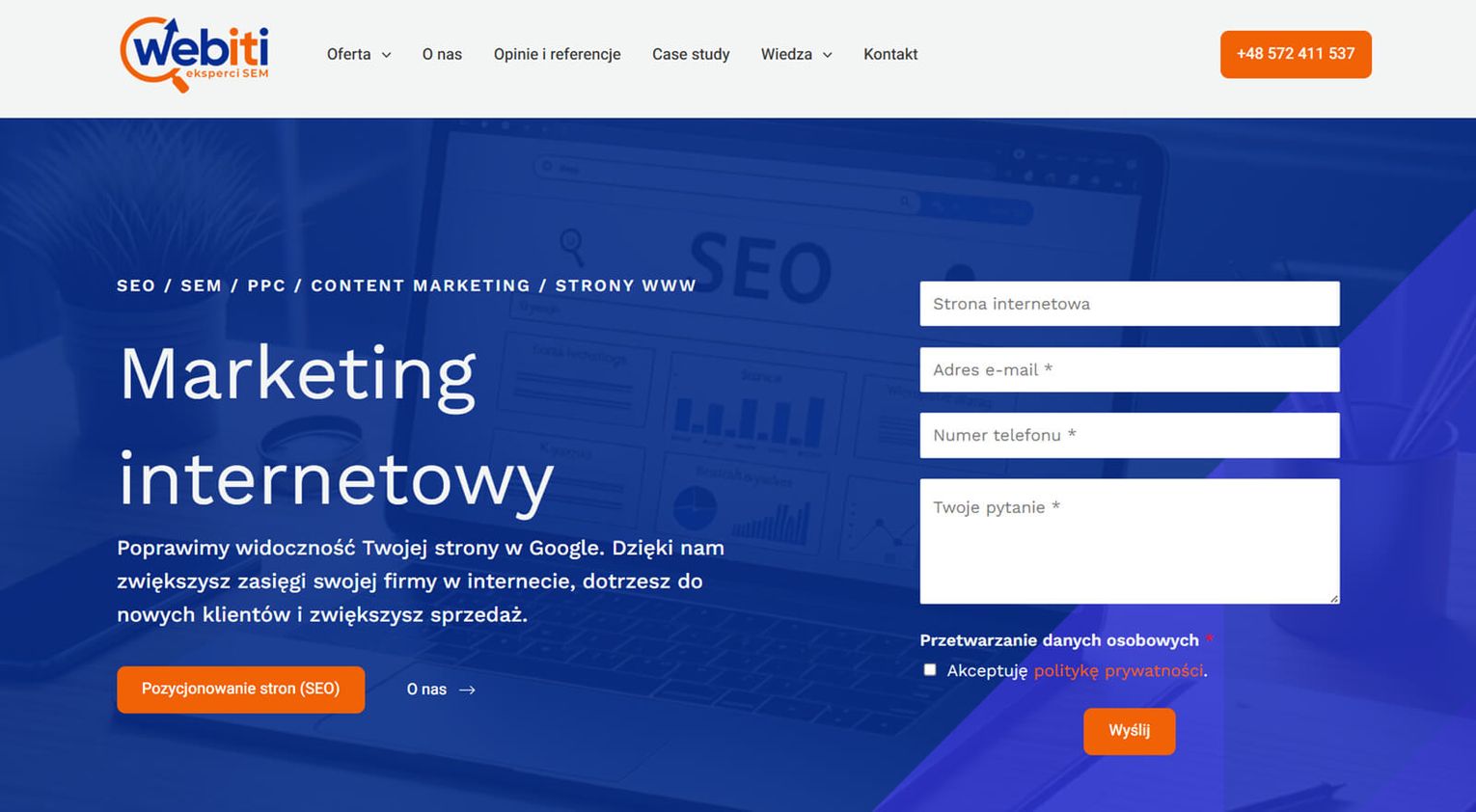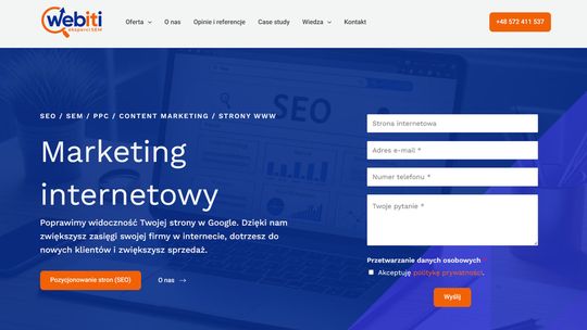 Webiti to wrocławska agencja SEO specjalizująca się w pozycjonowaniu stron, audytach SEO, kampaniach Google Ads oraz content marketingu. Pomagamy firmom zwiększać widoczność w Google i pozyskiwać wartościowy ruch, który przekłada się na realne wyniki biznesowe. Działamy strategicznie, stawiając na analizę, jakość i długofalowe efekty.